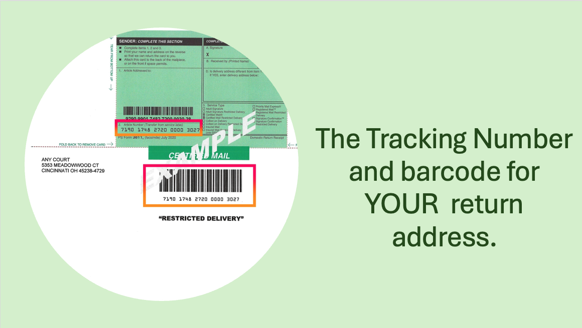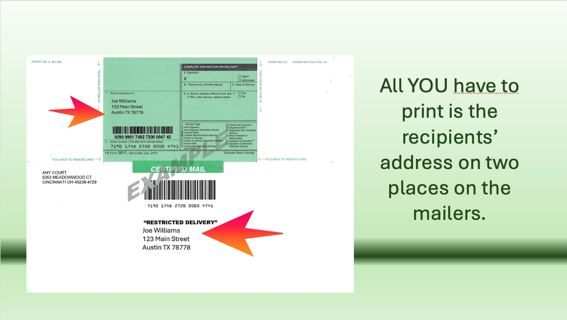 - ALL needed information for certified mailings are pre-printed on our mailers